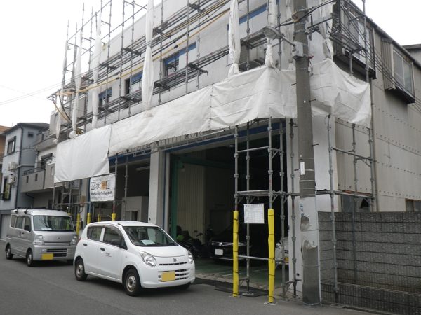 この後は通りに面した表側の既存の外壁を撤去して、下地作り・錆止め・ボード張り、そして塗装と仕上げていきます。