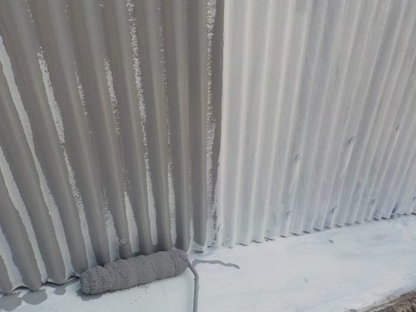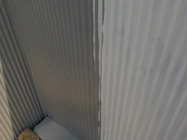 今回のトタンでは、錆止めを白色1層塗りで実施しました。
