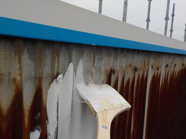 錆が出ている部分をある程度除去(ケレン)してから、錆止めを塗布していきます。
