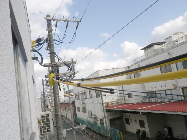 電線に防護管を取り付けるのは弊社ではなく、関西電力です。