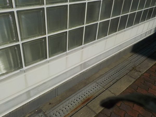 ガラスブロックはすき間ができて雨水がにじんでいましたが、今回の補修で防水性が高まったと安心されています。