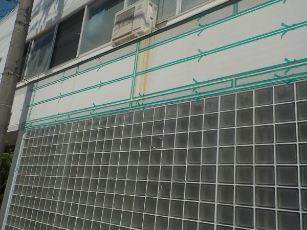築40年鉄骨2階建ての漏水対策!劣化シーリングの増し打ちでガラスブロック・外壁パネル・笠木を重点補修 大阪市大正区