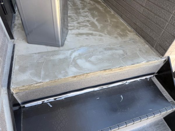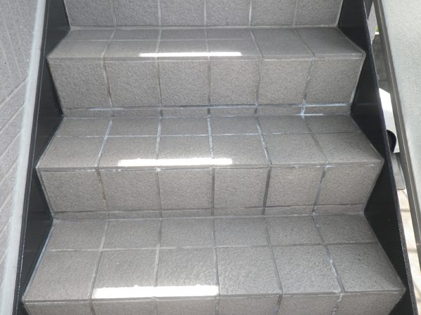 階段は雨ざらしになるため、今回はより耐水性が高い「エポキシシール」を採用しました。