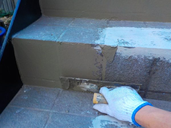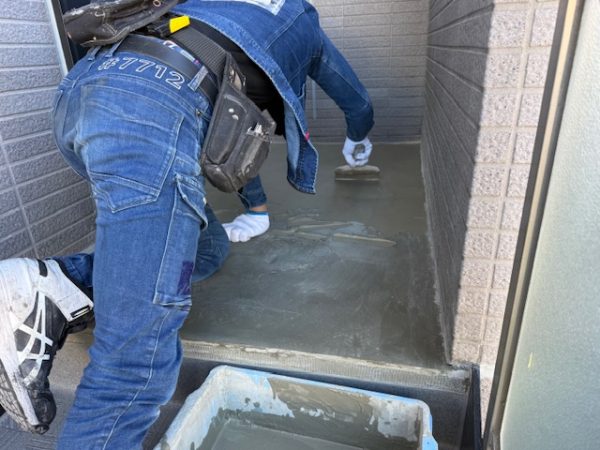 階段に「カチオンフィラー」という材料を塗布しているところです。