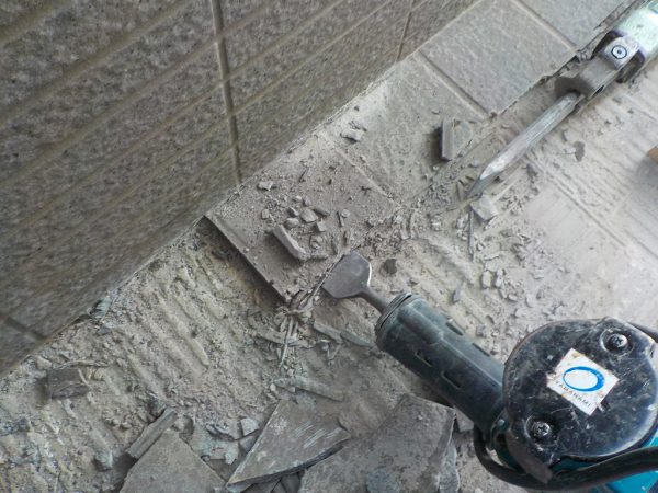 写真は、剥がれてきているタイルを機械で剥がしているところです。