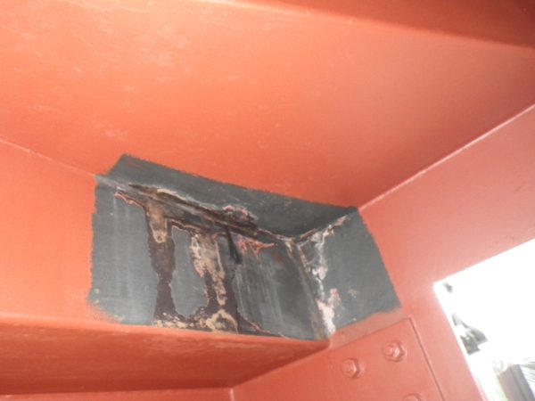 表側から水が回って裏側まで溜まってしまうことでサビができると、このように穴が開いてしまいます。