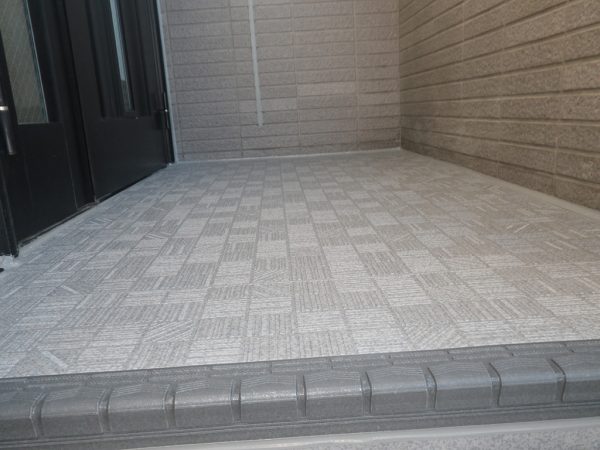 今回採用した防滑シート張りは、タイル張りより依頼主様にご不便をかける時間がかなり圧縮できます。