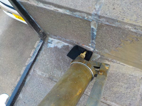 この部分は先に水反応型注入材を注入し、水が止まったのを確認してからパテで穴の部分を埋めて整え、最後にサビ止め材を塗布しました。